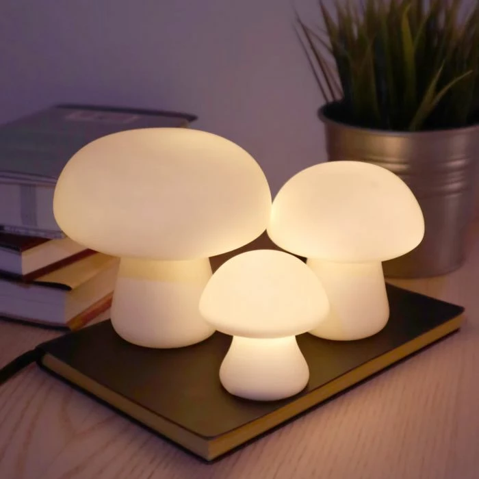 Ils ne sont pas phosphorescents comme certains vrais champignons, mais ici, ils sont en LED : nos lampes à lumière douce en forme de champignons vous permettront de bénéficier d’une lumière douce même dans les coins les plus sombres de votre maison. Une vraie petite lumière d’ambiance qui procure une sensation de bien-être. En effet, comme ils existent en trois tailles différentes, les champignons peuvent se placer partout et, où que vous soyez, vous pouvez créer un effet décoratif surprenant et un joli effet de lumière. Sans compter qu’un champignon lumineux en céramique est par définition très esthétique, quel que soit l’endroit où vous le placez.