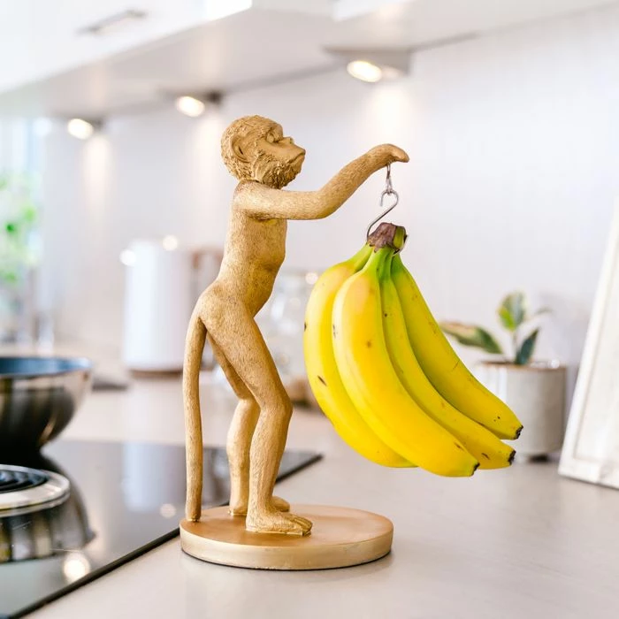 Un accessoire qui a du style pour une cuisine fruitée : le porte banane original et utile, en forme de singe, mais aussi dans un élégant look doré. Équipé d’un crochet, il permet de suspendre facilement plusieurs bananes. À partir de maintenant, il aura un rôle important dans votre cuisine (ou dans celle de la personne à qui vous offrirez ce petit singe).