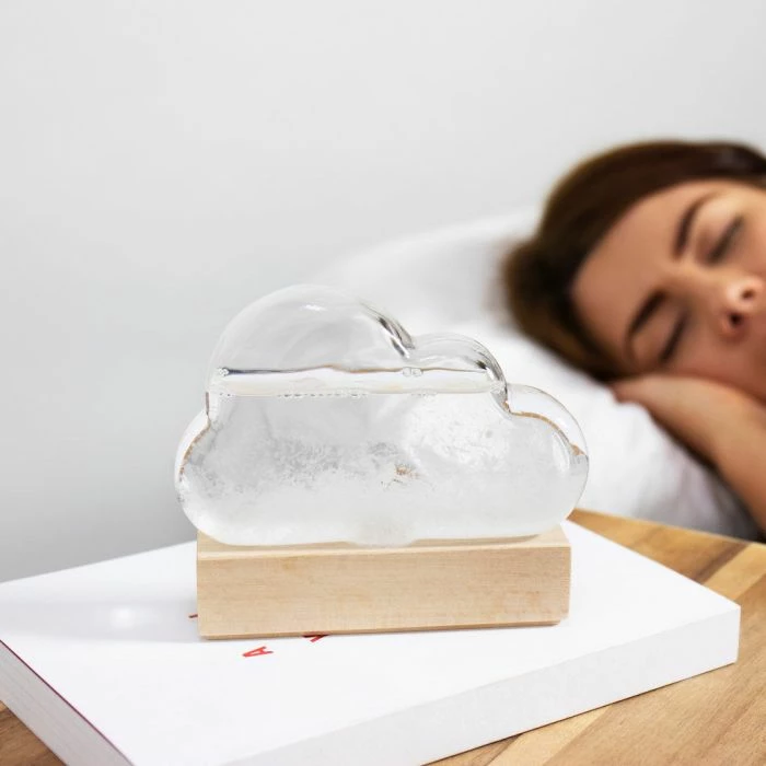 Avec les mêmes moyens que ces braves explorateurs d’antan, vous pouvez maintenant faire de même, sans bien sûr vous exposer à une mer déchaînée : il vous suffit de placer notre station météo verre tempête en forme de nuage sur le rebord de la fenêtre. Et après une petite phase d’adaptation, vous saurez assez précisément s’il va pleuvoir ou si le soleil va briller, si une tempête se prépare ou si tout restera calme (nous sommes d’avis que c’est plus fun qu’un bulletin météo numérique qui bipe ou que les applis ennuyeuses habituelles).